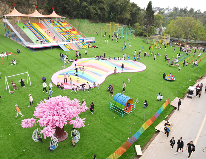 湖北恩施場地無動力樂園加水上滑道施工現場